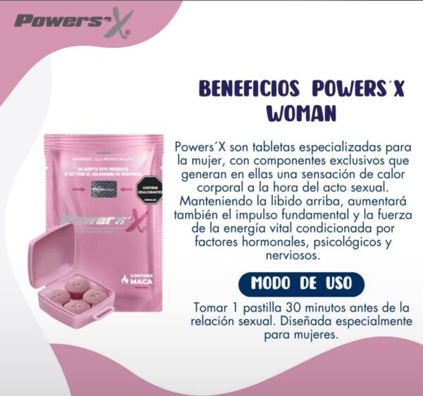 Powers´X Te ayuda a mejorar tu desempeño sexual y recuperar tu confianza para que vuelvas a disfrutar plenamente de tu sexualidad. Aumenta la libido, el calor corporal y el deseo sexual.